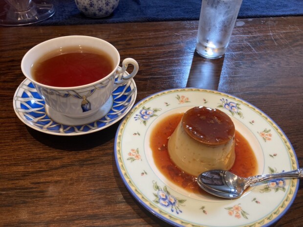 趣のあるシックな建物と植栽。これだけでも期待は膨らみますね!『E llery 珈琲店』さんです。さすがUeちゃんセレクト♫元市民病院のそばにあります。(エラリーコーヒー店・熊本市東区湖東1重目11−2)紅茶の品揃えもよくお気に入りのフォートナム&メイソン・夏摘みダージリン セカンドフラッシュ とやらがあったそうです。(わたし、何のこっちゃ?すごくおしゃれだな←だけわかった!あとでこっそり聞こう!)クラッシックプリンは数量限定!お早めに♪カップもすごくセンスあります・・・♡