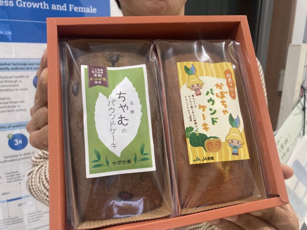 特産品のお土産もいただきましたよ!パウンドケーキはかぶせ茶と鈴鹿マロン南瓜をリッチに使ったふんわり仕立て。お茶は鈴鹿地区伊川さんより!九州のお茶はカテキンを感じますが(渋みがあります)鈴鹿のお茶は、すっきり、マイルド(光永曰くテアニンを感じる)リラックス効果大の美味しいお茶でした!