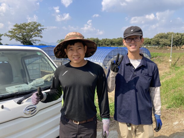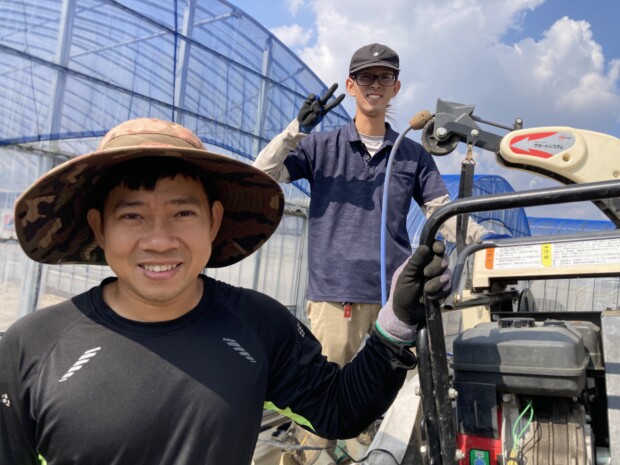 奥は防除担当の石ちゃん。なかなかの腕前。部長の信頼も熱いんです。