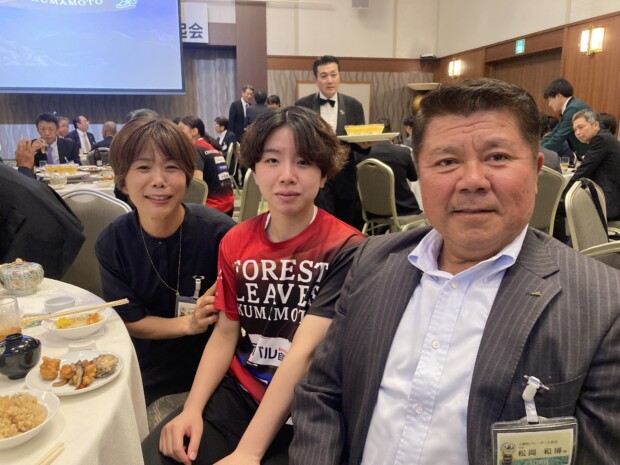 工藤美波選手(リベロ・ほんとコートで見るより小柄)がテーブルに来てくれました。シャイで優しい笑顔♡ケガをされた仲間の選手を思いやる言葉に、・・・涙(すぐ泣いちゃう。歳ですかね)私のイチオシ選手に決定!農業法人協会 松岡副会長(熱心!)と美波さん、光永。