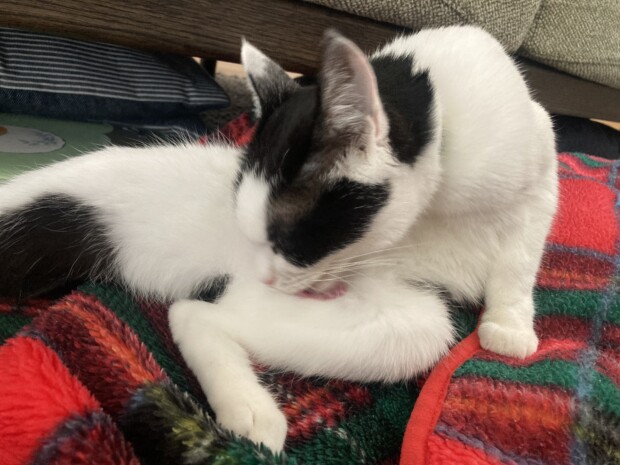 猫ちゃんを飼い始めました。名前はミコライオちゃんです(ある芸人さんより前からこの名前にすることは長年の希望でありました♫)女の子です。実は菊池保健所から譲渡していただいた保護猫ちゃん。